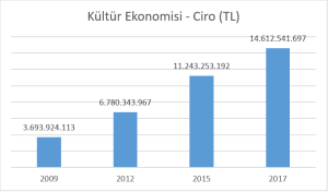 Aşağıdaki grafik, 2009-2017 yılları arasındaki seçili yıllardaki değişimi ve kültürel faaliyetlerden elde edilen gelir (ciro) artışını gözler önüne seriyor.