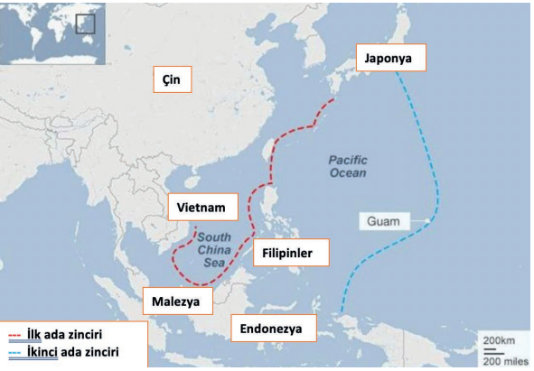 Çin’e yönelik uygulanan bu çevreleme stratejisinin en önemli paydaşlarının başında Japonya, Avustralya ve elbette Tayvan geliyor. Çin’in Pasifik Okyanusu’na erişiminin engellenmesi, yani bir bakıma nefesinin kesilmesi için birinci ve ikinci ada zinciri olarak adlandırılan alanların kapatılması oldukça elzem. Tayvan ise tam birinci ada zincirinin ortasında yüzen uçak gemisini andıran stratejik bir konuma sahip. Bu durum Tayvan’a vazgeçilemeyecek bir potansiyel daha yüklüyor.
