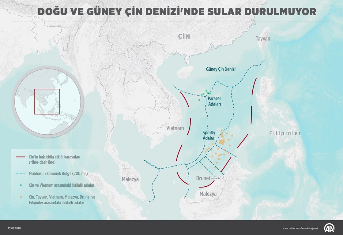 Güney Çin Denizi’nde kara ve deniz yetki alanlarıyla sorun yaşayan ülkeler: Çin ve Vietnam, Filipinler, Malezya, Bruney’in içinde bulunduğu Güneydoğu Asya Ulusları Birliği (ASEAN) ülkeleri ve Tayvan. Dolayısıyla, sorunların çözümünde bir ASEAN penceresi var ancak üye ülkelerin içişlerine karışmama prensibiyle konsensüse dayalı “ASEAN tarzı” çözüm üye devletlerin Çin ile ekonomik ve ticari ilişkileri, ABD etkisi ve kurumsal olarak hukuki bağlayıcılığı olmaması sebebiyle tam randımanlı çözümden uzak kalıyor. Hatta ASEAN 2012 Zirvesi sonrası Güney Çin Denizi ihtilaflarından dolayı tarihinde ilk kez ortak bildirge yayımlanamadığı da göz önüne alındığında ASEAN’ın çözüm bulmadaki etkisizliği ortaya çıkıyor.