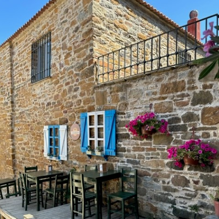 Tatlı olarak Zeytinliköy’deki Nostos Cafe’nin gösterişsiz sade mekânında sakızlı dondurmalı muhallebisini çok beğendik. Ayrıca bu köyün dibek kahvesi de meşhurmuş. Kahvenizi de Nostos Cafe’nin hemen çaprazındaki Madam’ın Kahvesi’nde içebilirsiniz.