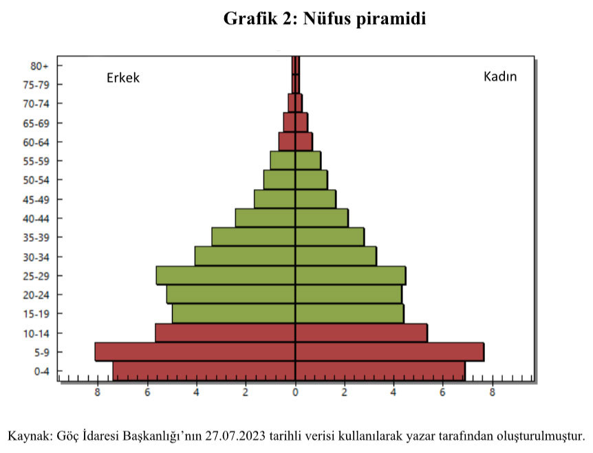 Türkiye’de 2022 yılı sonunda ortanca yaşın 33.5 olduğunu düşünürsek, Suriyelilerin ne kadar genç bir yaş yapısına sahip oldukları daha iyi anlaşılacaktır.