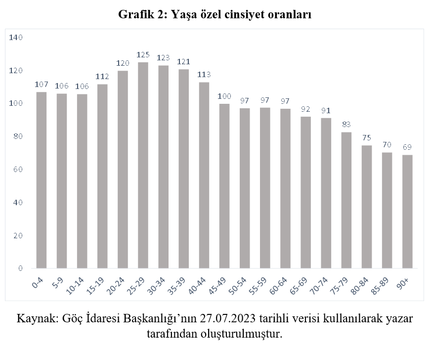 Özellikle 20-40 yaşları arasında cinsiyet oranı 120’nin üzerinde. Bu durum aslında Suriyelilerin göç ettikleri, Ürdün, Lübnan gibi ülkeler için de geçerli.
